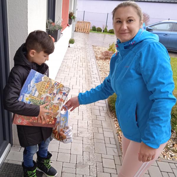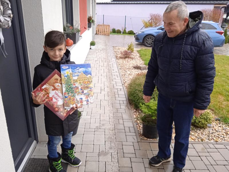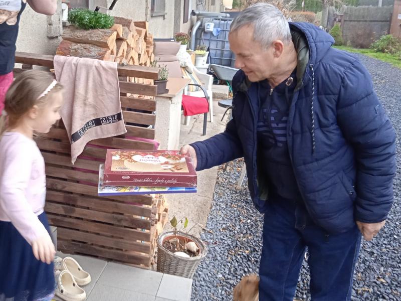 Mikulášskou nadílku dětem předali jménem obecního úřadu pan starosta a členka sociálního výboru.