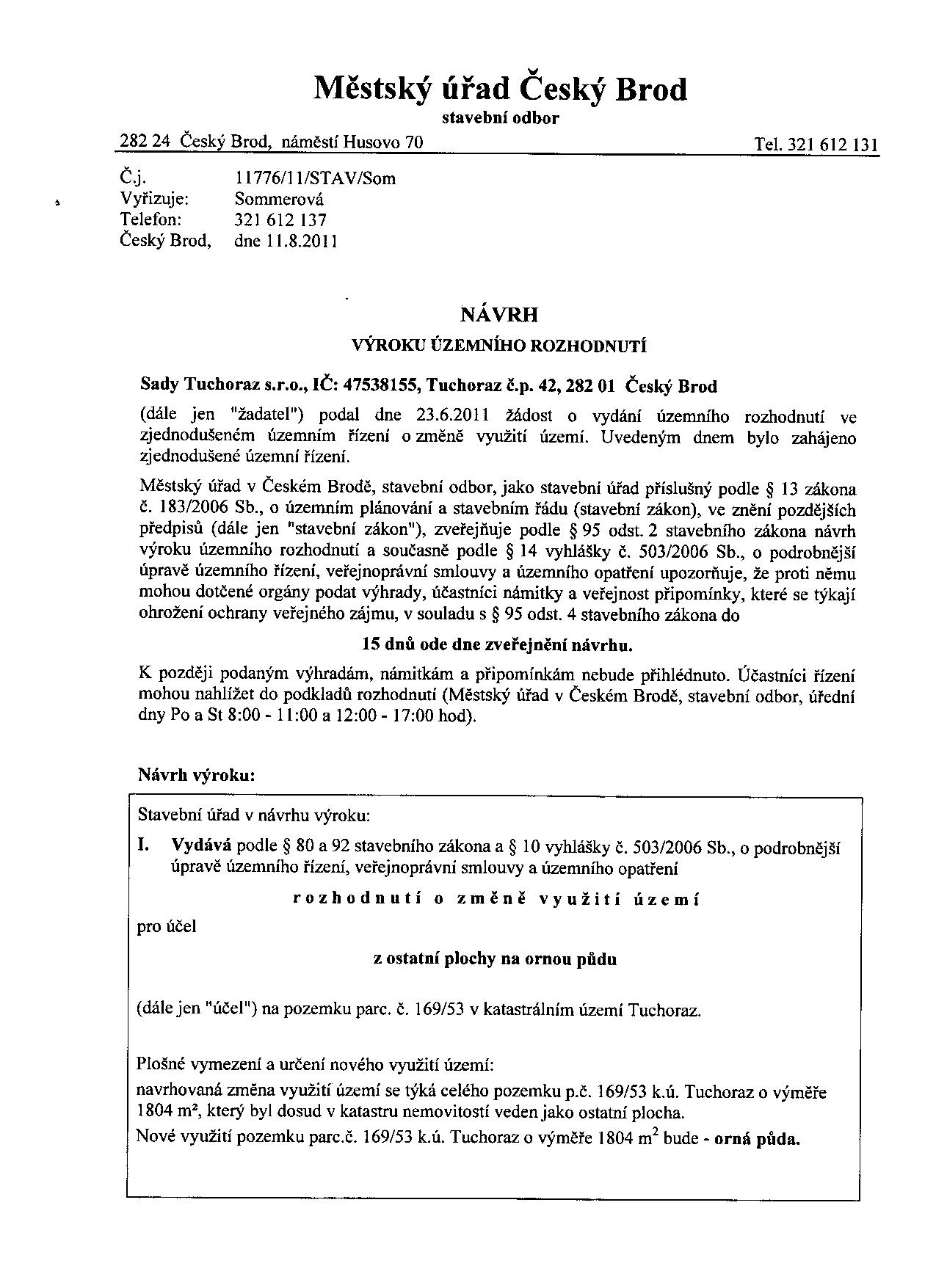 Změna využití území - Sady Tuchoraz